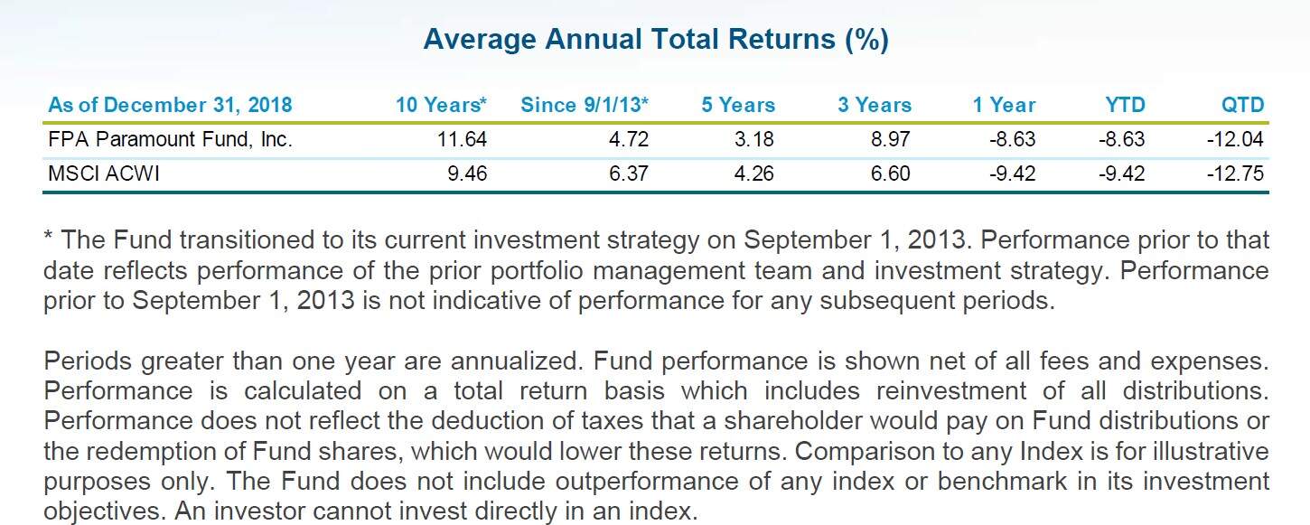 FPA Paramount Fund 4Q18 Commentary And Webcast Slides
