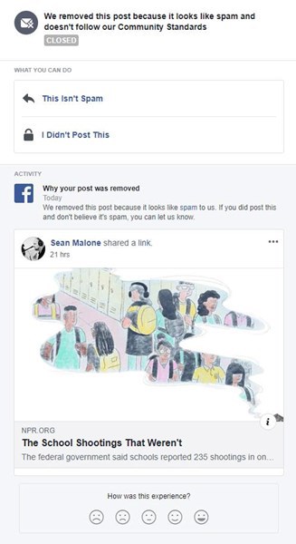 Facebook Flags, Censors NPR Report On Inflated Government School Shooting Statistics
