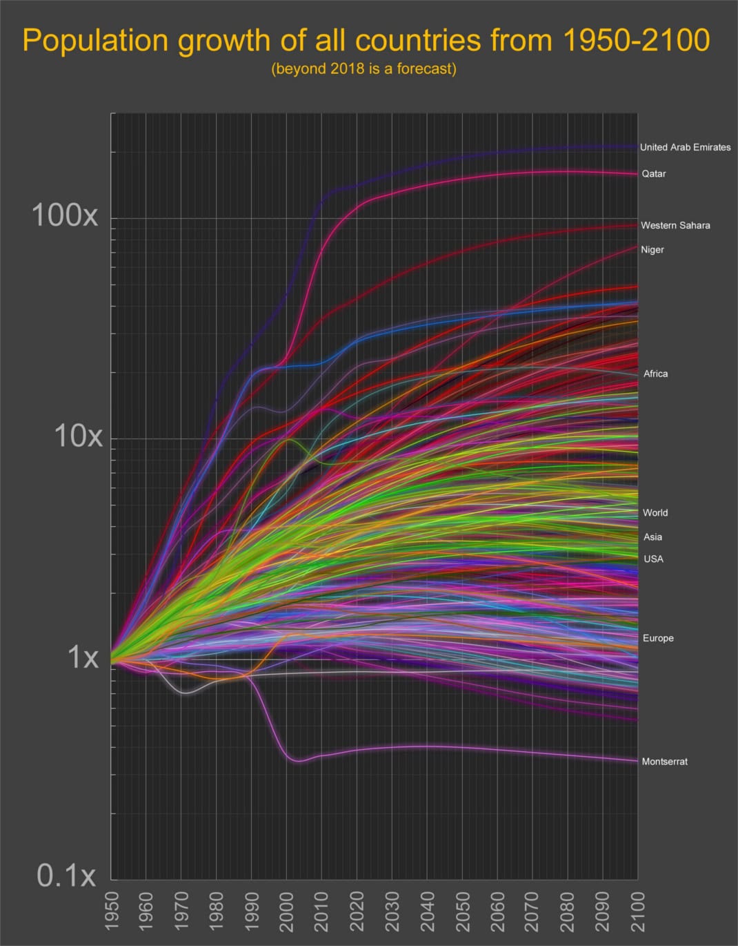 World Population Growth Visualized (1950-2100)