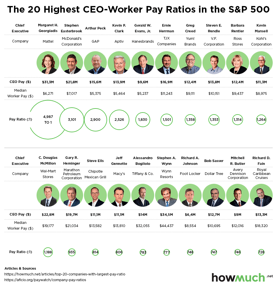 The 20 Companies With The Highest CEO And Worker Pay Gap