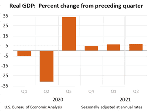 In the current economic environment, finding a better mousetrap to prevent infestations inside your investment portfolio can be a challenge. Concerns over the COVID delta variant, rising inflation, Federal Reserve policy (i.e., “tapering”), and geopolitical tensions (Afghanistan) remain looming in the background. However, the economy continues to expand at a healthy pace (+6.6% Q2 – Gross Domestic Product growth has soared to record heights (see charts below).