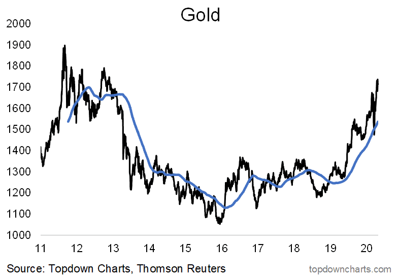While WTI prints all-time lows, gold is at its highest price since 2013 amid immense global stimulus as a result of COVID-19’s devastating near-term economic shock. For a brief few days, gold and precious metal stocks had a capitulation moment of their own in early March – which by now seems like ages ago.