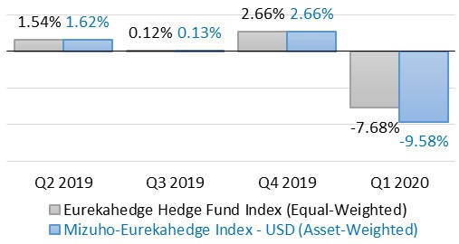 Hedge fund managers were down 6.00% in March, outperforming global equities which languished 13.99% over escalating COVID-19 outbreak concerns. Around 80% of the hedge fund managers tracked by Eurekahedge were able to outperform the global equity market during the month.