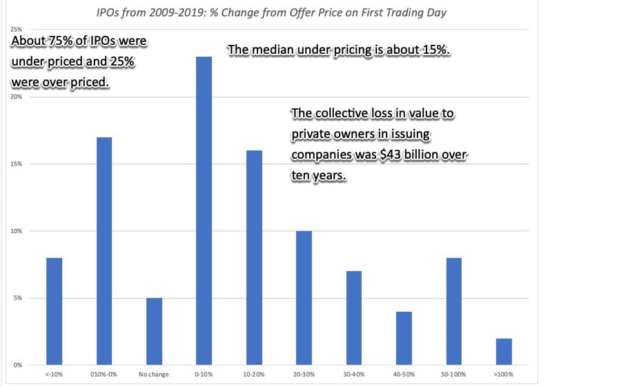 - The second is that Gurley's critique seems to suggest that if bankers did a better job in terms of pricing, where the stock price on the offer date is close to the offer price, that the banker-run IPO model would be okay. I think that a far stronger and persuasive argument would be to show that the problem with the banking IPO model is that changes in the world have diluted and perhaps even eliminated that value of the services that bankers offer in IPOs, requiring that we rethink this process.