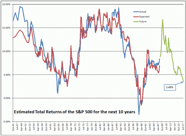 The future return keeps getting lower, as the market goes higher