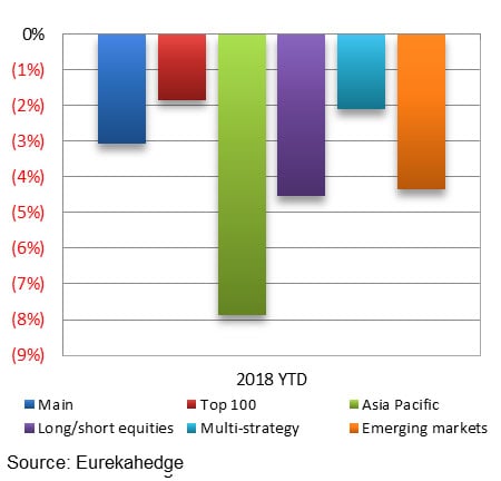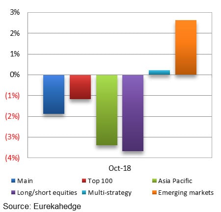 - Emerging markets focused mandates are in the red for the year down 4.57% year-to-date, with Asian managers down 8.02% for the year with the underlying Eurekahedge Greater China Hedge Fund Index posting losses of 13.94% as of October 2018.