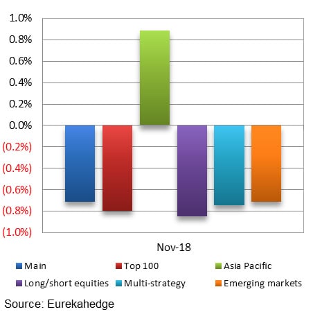 - The Eurekahedge Hedge Fund Index declined 2.36% as of November 2018 year-to-date, in contrast to the 8.45% gain made in 2017, which turned out to be the best year for hedge funds and equity markets since 2013.