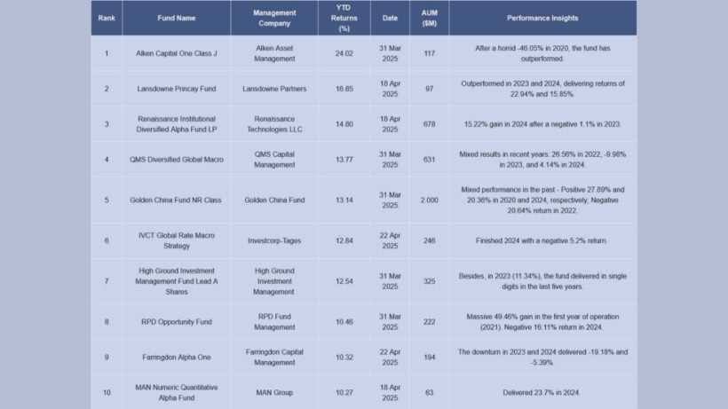 The newest edition of HSBC Hedge Weekly comes with only two changes in the top 10 performer list. One name is new, and it is a Macro Strategy Fund from Investcorp-Tages. The second is a returnee to the list, a Numeric Quantitative Fund from MAN Group.