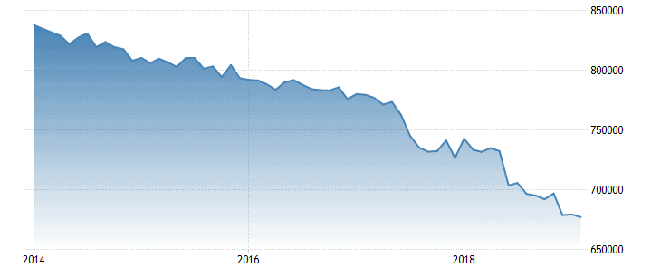 The Italian banks are already financially weak, scuffling with refinancing their bond issues and huge debts. This has drastically reduced their capacity to lend the funds required to rejuvenate the flailing private sector, too. Loans to the private sector decreased from 679,216 million euros in January 2019 to 676,955 million euros in February 2019, marking a difference of 2,261 million euros over a period of just 30 days.
