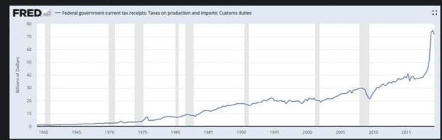The consensus interpretation of tariffs is that higher tariffs are inflationary for the country imposing them. In the current market, US tariffs on imported Chinese goods should be inflationary because the tariffs are on many common items used in every day activity. The US has ramped its Chinese Customs Duties in 2018 from a level of ~$40Bil/Q to ~$75Bil/Q which amounts to ~$140Bil/Yr additional collections. Consensus thinking is that this is a direct cost to US consumers. However, US inflation remains unmoved at ~2%. Why?
