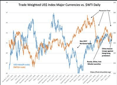 China has moved troops near Hong Kong to counter pro-democracy protesters. Some expect martial law to be imposed shortly. The US$ has risen sharply as capital shifts to US$ denominated assets.