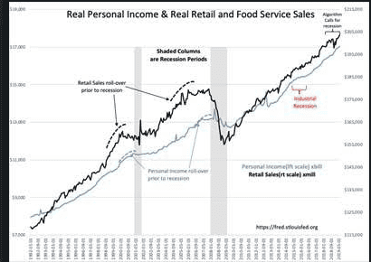 US employment reached a new high July 2019 with vehicle sales holding at current levels. Temp Help has stalled but Real Retail Sales and Personal Income continue to rise. This looks quite positive in the face of the current round of pessimism which has been present since Jan 2018.