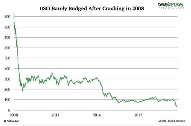 But most of these investors have made a terrible investment. There’s one simple reason that all but ensures funds like USO will never fully recover from today’s lows.