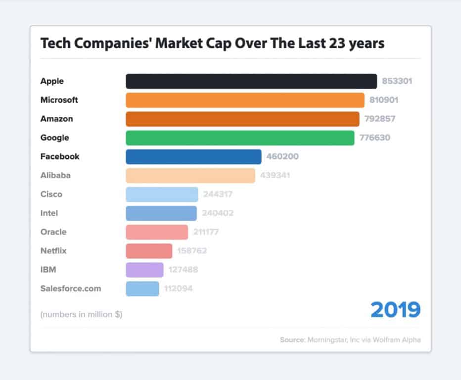 Animation: The Biggest Tech Companies By Market Cap Over 23 Years