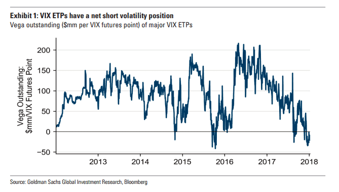Even though the size of inverse and levered VIX ETPs is small in the context of the broader US equity market, the growth of these products has become "worrisome" as they have come to dominate the market according to Goldman Sachs derivatives analyst Rocky Fishman.