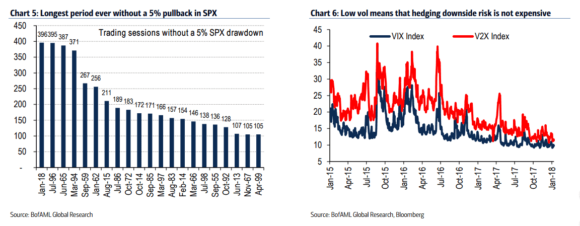 According to Bank of America's Chief Investment Strategist Michael Hartnett, if the S&P 500 continues to rally as it has done for the first few weeks of the year, by the end of 2018, the index will have surpassed 6,000. Only a few weeks (and around 100 S&P points later) after Hartnett publish this staggering observation, BoA Investment Strategist James Barty re-ran the numbers and concluded that a target of 7,000 is now more appropriate. After taking into account this forecast, it's no surprise that Barty's report concludes that the market is now looking "a little stretched", although the 7,000 is a bit more surprising.