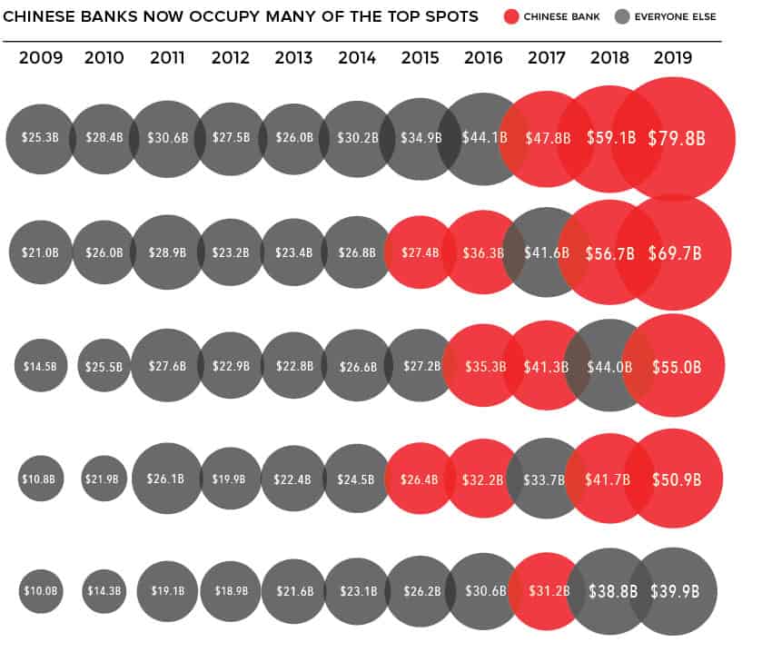 Here’s a look at the ascent of Chinese banks over time: