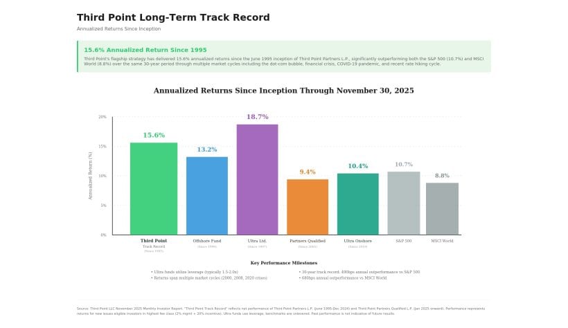 Dan Loeb's Third Point LLC's flagship hedge fund declined 0.5% in November, bringing year-to-date returns to 7.9% through November 2025, and provided commentary on some recent portfolio changes according to a client memo reviewed by Hedge Fund Alpha. The performance lagged the S&P 500's 0.2% gain for the month.