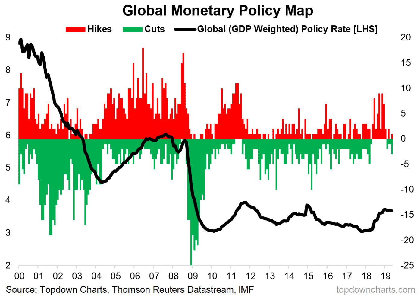 So it raises a couple of questions which I will leave open for you to ponder: a. Was the 2018 tightening a policy mistake? (too much, too fast); b. Should central banks be preemptively easing right now given the risk of deflation overshoot? c. How much easing will come, and how fast?