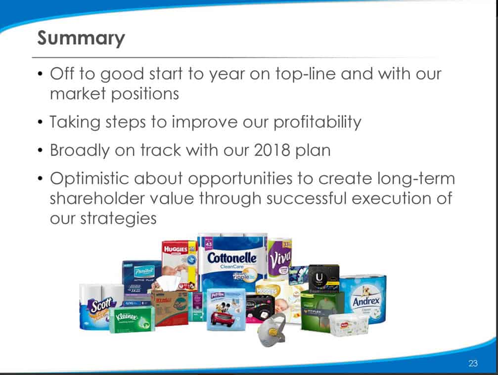 Therefore, I thought it would be helpful to provide FAST Graphs analyze out loud videos on several dividend growth stocks that have corrected from high valuation levels to more reasonable levels. My first research candidate was General Mills Inc (GIS), with this article I will be covering Kimberly-Clark (KMB). The following slide summarizes their key product lines. And the second slide highlights management’s optimism about the future growth potential of the company.