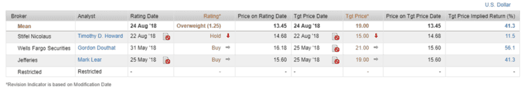 Certainly, there is a lot going on here, and these are not perfect apples-to-apples comparisons, in terms of risks and business models (more on this later), but they do highlight PRT’s attractive valuation, in our view. And for still more perspective, here are the views of the Wall Street analysts covering PRT (3 buy recommendations, and one hold).