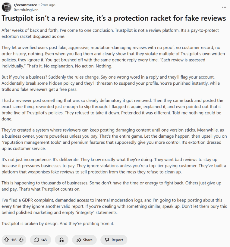 - Trustpilot is a third-party review site that generates revenue by selling premium memberships to businesses. Our research uncovers mafia-style extortion campaigns against non-paying businesses.