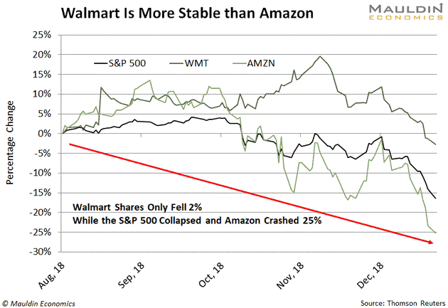 Just think back to the stock market crash late last year. The S&P 500 fell 17% from August through late December. And Amazon’s stock crashed 25%.