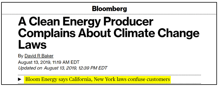 The modified incentive system requires replacing natural gas with biogas. With 91% of Bloom’s servers operating on natural gas, the change rendered the program largely out of reach for the company. It is set to expire January 1, 2021 regardless.