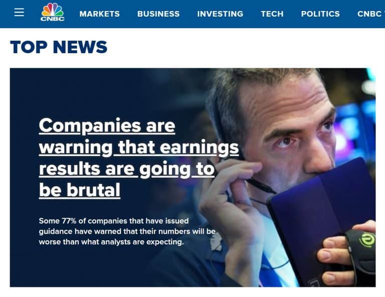 July 1, 2019 CNBC headline that warns about upcoming corporate earnings (this strongly affects stocks):