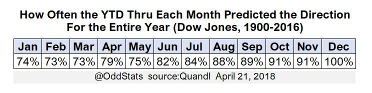 I found this table on @OddStats Twitter this week. It shows positive performance begets positive performance and negative performance begets negative performance in stocks. Obviously each year has many other nuances and subtleties that affect eventual performance. But we can at least use this to start tempering expectations for returns in 2018.
