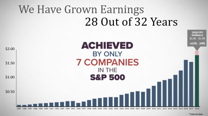 Adjusted earnings-per-share increased 10% for the fourth quarter, and 15% for 2018. The upcoming year is expected to be another good one for the company.