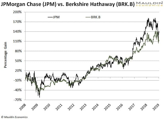 JPMorgan Chase gained 141% during this period compared to 113% for Berkshire Hathaway.